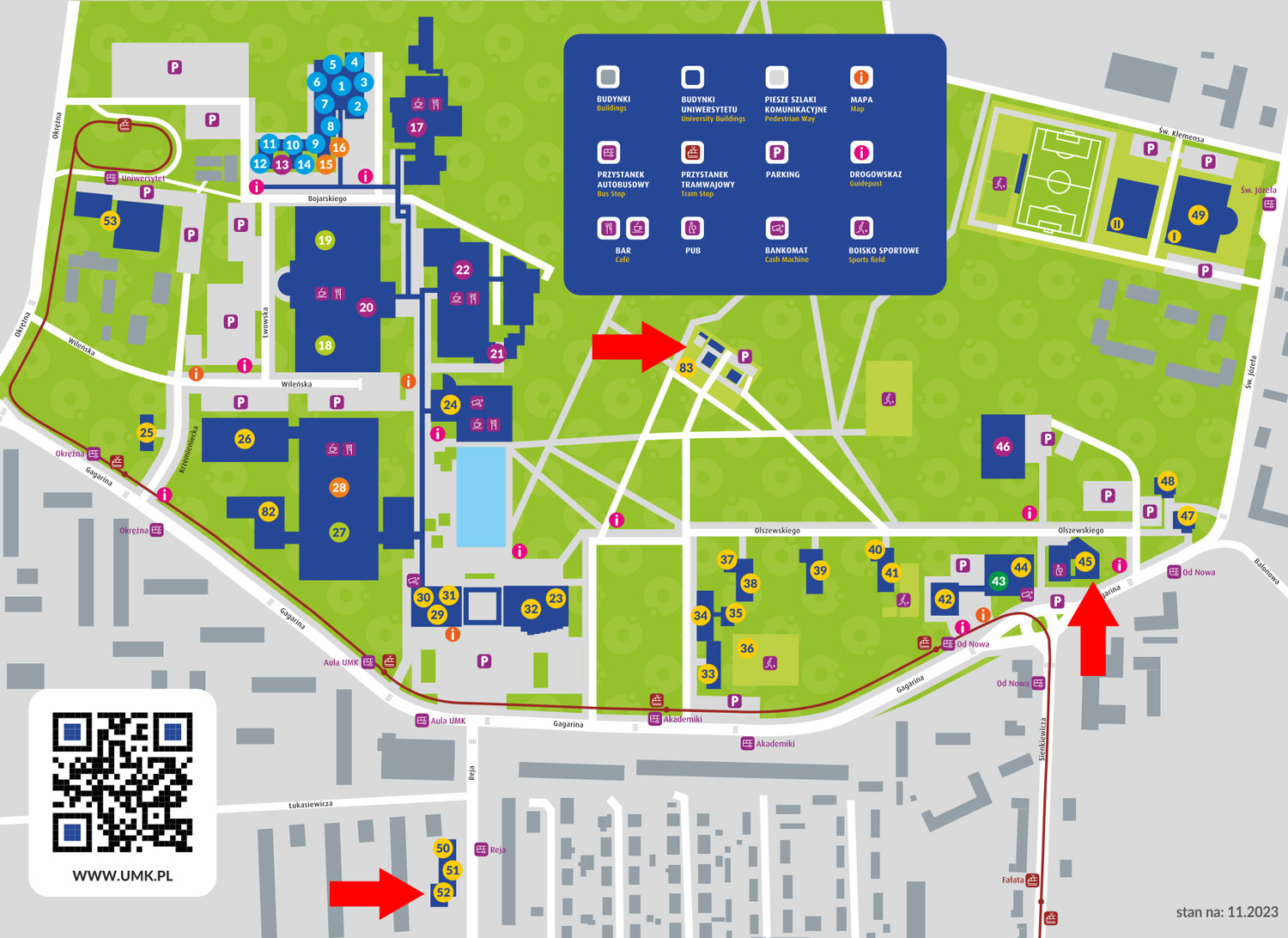 - NCU Copernican Integration Centre (number 83 on the campus map), tel. +48 56 611 27 88