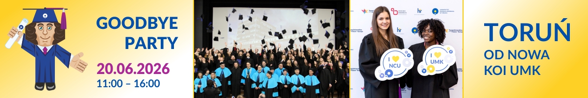 - 13:00–16:00 – Goodbye Party w Kopernikańskim Ośrodku Integracji UMK (nr 83 na mapie kampusu)